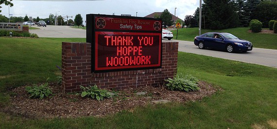Hoppe Woodworks has taken a lot of pride in taking an opportunity to help those who save lives. In this case, we've worked with the Franklin Fire Department to create the functional kitchen they so badly needed (seen above during a Fox 6 News "Real Milwaukee" feature.) Here's an excerpt of what was so kindly written about the project in the Franklin City Newsletter from June, 2014: